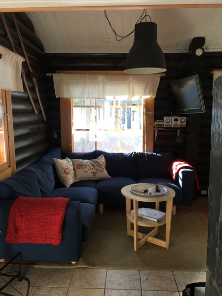 Äkäsakka is a semi-detached house. It has two small bedrooms, the first with a double bed and the second with a bunk bed. The upstairs loft offers two more sleeping places.